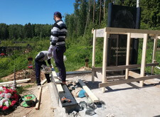 Первые две фотографии отображают состояние места захоронения до проведения работ и монтажа мемориальной композиции.